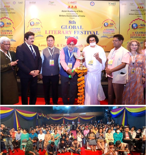 Noida: The City of Noida was bubbling with energy and enthusiasm. The excitement of the people could be seen in the well decorated campus of Marwah Studios where people were queuing up to enter the prestigious auditorium to be part of the grand event-The Inauguration of 8th Global Literature Festival 2022.