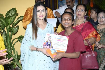 Ruchi Gujjar, known for her impactful roles in both television and film, attended the event to honor the festival and seek divine blessings for her forthcoming projects. Dressed in traditional attire, the actress expressed her gratitude to Sanjay Kadam for his support and dedication to the community. Ruchi’s NGO Shree Ram Janhit Kalyan Foundation distributed books, Tablets, Digital Watches & Earphones to the student.