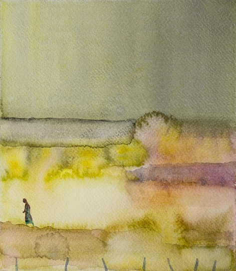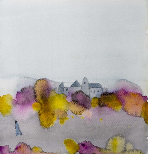 Subhash Awchat’s present series of watercolours is a reflection of time, its structure, not measured by a watch but one that is witnessed when we fall humble into a magnificent landscape. In French we would say “aquarelles au fils du temps” or watercolours over the passage of time.
