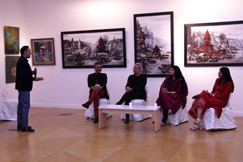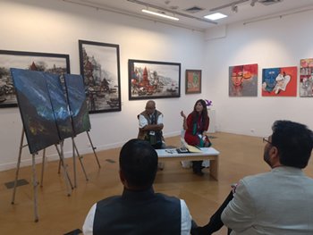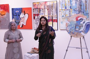 It was indeed wonderful to see the 5th AAF was bless by the powerful presence of Dr.Sonal Mansingh, Mrs. Ratan Kaul (the festival advisor to AAF), Mr. Suvir Saran ((the Collaborator to AAF), H. E Mrs. Daniela Sezonov Tane (Ambassador of Romania to India), Mr. Uday Mahurkar, Mr. Sunit Tandon, Ridhima Kansal, Maneesh Baheti, Ajay Jain, Dr.Blossom Kochhar, Mr. Kamal Modi, Mrs. Anita Singh and Ms. Gunjan Goela.Furthermore, the most interesting thing was to see Artists like Sakti Burman, Jatin Das and Subodh Gupta musing at the art works and taking time to interact with all artists and AAF team members Rritu Goel, Rashi Paliwal, Ratnpriya Kant, Sharad Gurav, Satish Patil, Neerajj Mittra, Santanu Ganguly and Arka Pradhan.