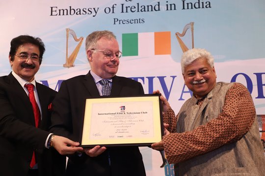 A scholarship of AAFT Asian Academy of Film and Television was presented to Irish Ambassador H.E. Brendan Ward on this occasion. Sandeep Marwah also presented Life Membership of International Film and Television Club to the dignities. An exhibition of paintings by Tanisha Bakshi was another attraction. The event was supported by Indo Ireland Film and Cultural Forum, International Chamber of Media and Entertainment Industry and World Peace Development and Research Foundation.