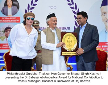 Vaastu Mahaguru Basannt R Rasiwasia was conferred with the Dr Babasaheb Ambedkar National Award for Contribution to India through ReVaastu by the Hon Governor at the event.
