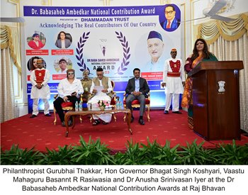 Instituted by the Dhammadan Trust and the Perfect Woman Magazine, Dr Babasaheb Ambedkar Award was organised by Dr Geet S Thakkar, Chandramani Jadhav and Pravin More and held at Raj Bhavan.