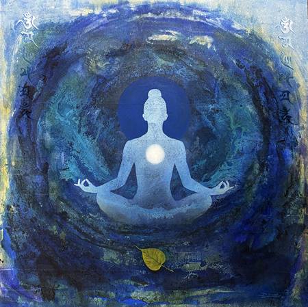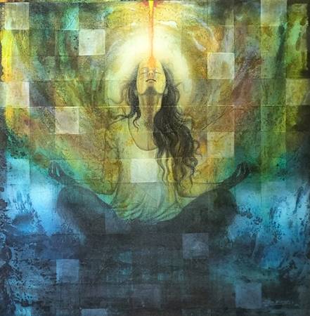 Dinesh Kumar Parmar’s artistic oeuvre stands as a vivid visual meditation on inner states of being, spiritual transcendence, and the synesthetic experience of colour, rhythm, and emotional equilibrium. His recent series, as seen in the mixed-media works from Aura and Meditation, reveals a subtle and contemplative visual language where figuration and abstraction coalesce to communicate metaphysical stillness and emotional euphoria.