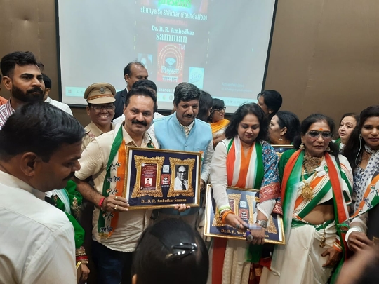 On this 15th august INDEPENDENCE day he received most coveted DR AMBEDKAR VISHWA RATNA SAMMAN by the hand of Grand son of Dr Ambedkar Bhimarao ji, at Mayor Hall event was hosted by Dr Chander Kala Singh and at the same time postal stamp issued in his favour with his name pix.