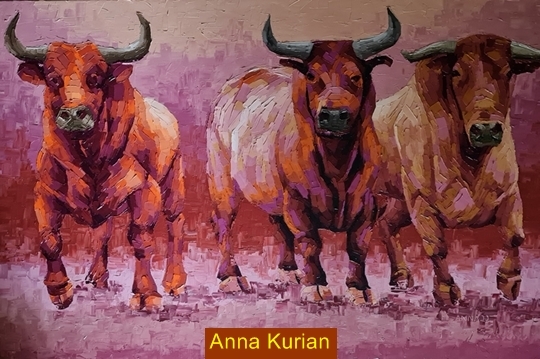 The Baroque animal painting tradition originated around seventeenth century in the western art world have found many followers across the world who portray animals, sometime using landscape as the background. Artist Alpana Dangi, Anna Kurian, Dipti Kumar, Rushan Shah and Shankar Rajput seems to be mesmerised by the beauty and power of different animals such as horses, bulls, elephants and stags. The other artists who got fascinated by wildlife are Haripriya Kulkarni, Jalpa Patel, Poonam Juvale, Praveena Parepalli and Saket Arbhi; their artworks are the visual treat for wild-life lovers visiting art fair. Viewers can select beautiful paintings from a charming variety of flying bird paintings executed dexterously by Anrita Basu, Bhaduri Shah Baria, Sanjivanee Bhoir and Shankar Pamarthy.