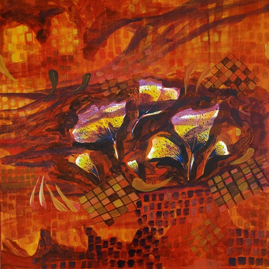 Bharti Parmar – She is based in Mathura. Her works are influenced by the impression of primitive civilization and culture where human beings used to make or embellish their paintings. She has depicted the unseen side of attraction in nature in her work. She tries to depict the mystery behind the hidden treasures of nature in their unseen or obscure/hidden iconic modules / forms. She has used different mediums such as Acrylic colours, water colours, soft pastel colours etc. She has also shown tribal art in vivid forms in her creations. Her abstract style of work reveals the embodiment of nature in numerous iconic motifs. She has done Ph.D. in fine arts from Gwalior where she did research on tribal women artists and their cultural vignettes. She has displayed her work earlier at Bhopal, Bangalore and Gwalior and in many group art shows all over the country and abroad such as Asian Young Artists Festival – Seoul – South Korea, Asian Contemporary art exhibition, Uijungub and Busan in South Korea etc. She has got good response from art world for her earlier presentations.